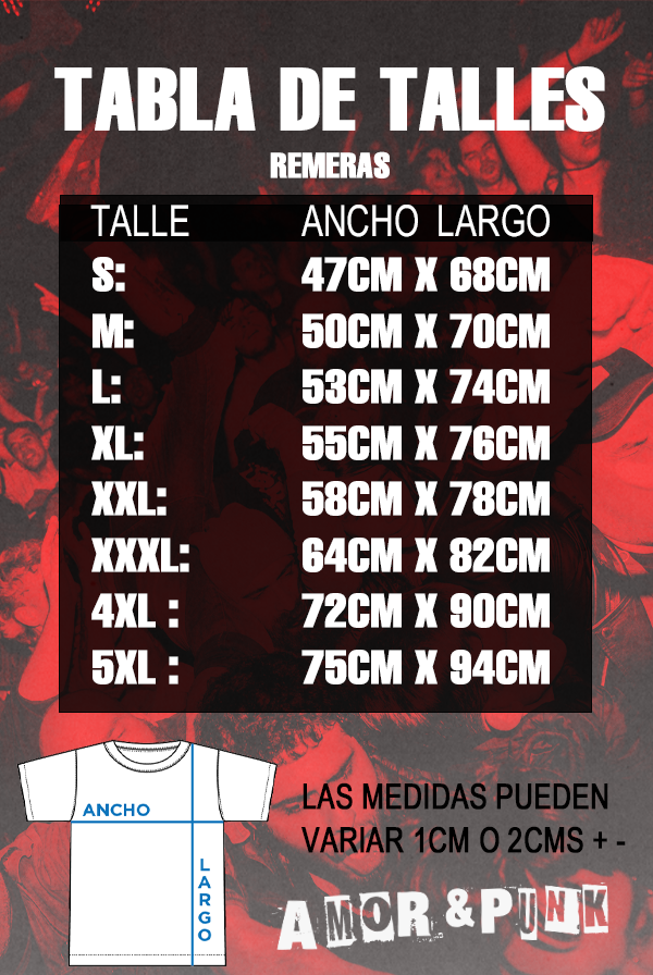 Talles del XS AL 5XL (Tabla de talles disponible aqui )